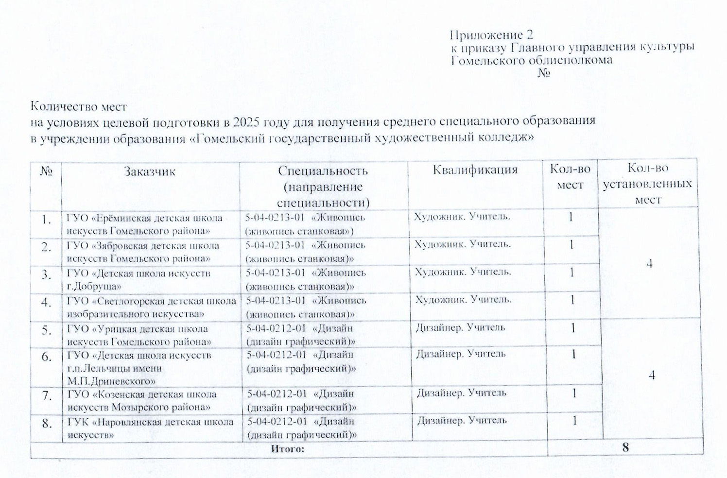 (согласно приказу главного управления культуры