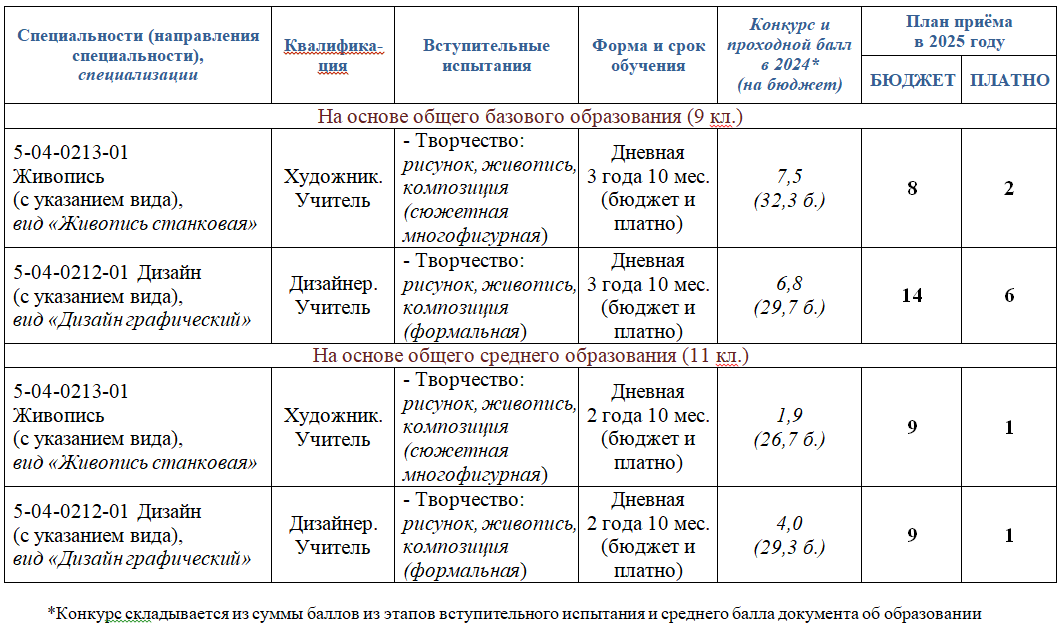 В УО «ГОМЕЛЬСКИЙ ГОСУДАРСТВЕННЫЙ ХУДОЖЕСТВЕННЫЙ КОЛЛЕДЖ» В 2025 ГОДУ
