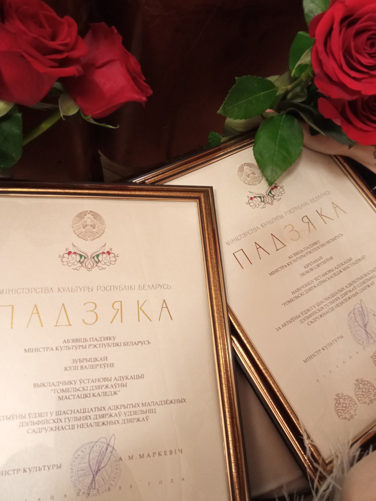 Главная / Мероприятия / 10.11.2022 состоялась встреча и чествование участников Дельфийских игр государств участников СНГ. Учащаяся художественного колледжа Кириллова Людмила и преподаватель Зубрицкая Юлия были отмечены благодарностями за достойное представление нашей Беларуси в своей номинации! Гордимся нашими! #ГГХК