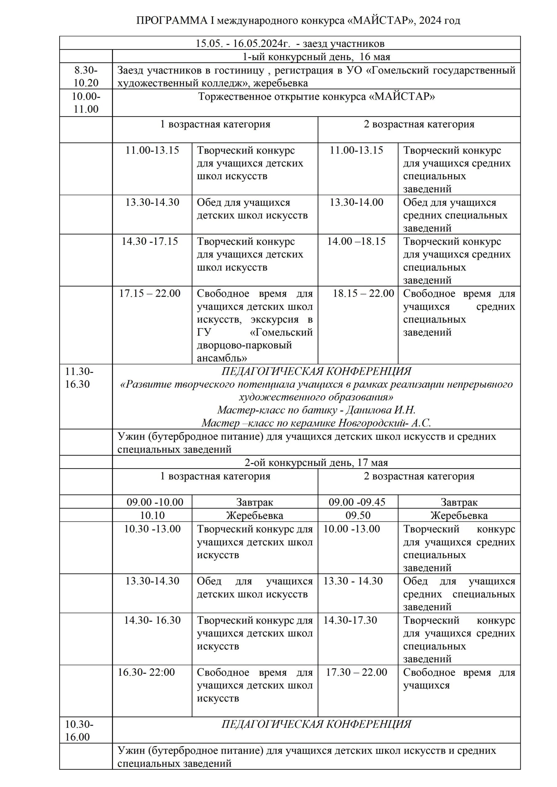 Программа I международного конкурса "Майстар" - Гомельский государственный художественный колледж
