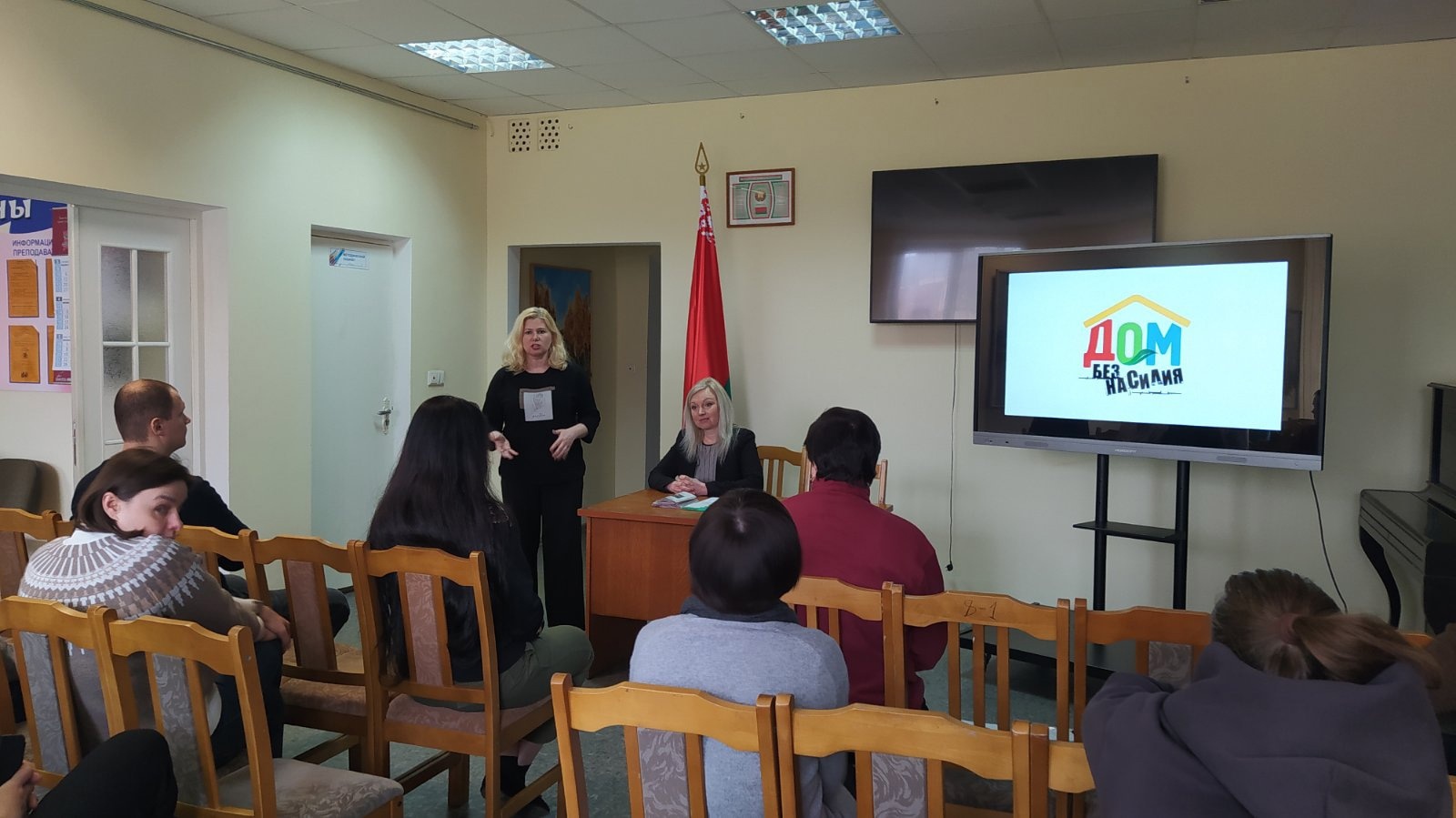 Главная / Мероприятия / Сегодня в рамках республиканской акции “Дом без насилия” состоялась встреча педагогов #ГГХК с заведующим отделения социальной адаптации и реабилитации учреждения “Территориальный центр социального обслуживания населения Железнодорожного района” Дайнеко И.С.
