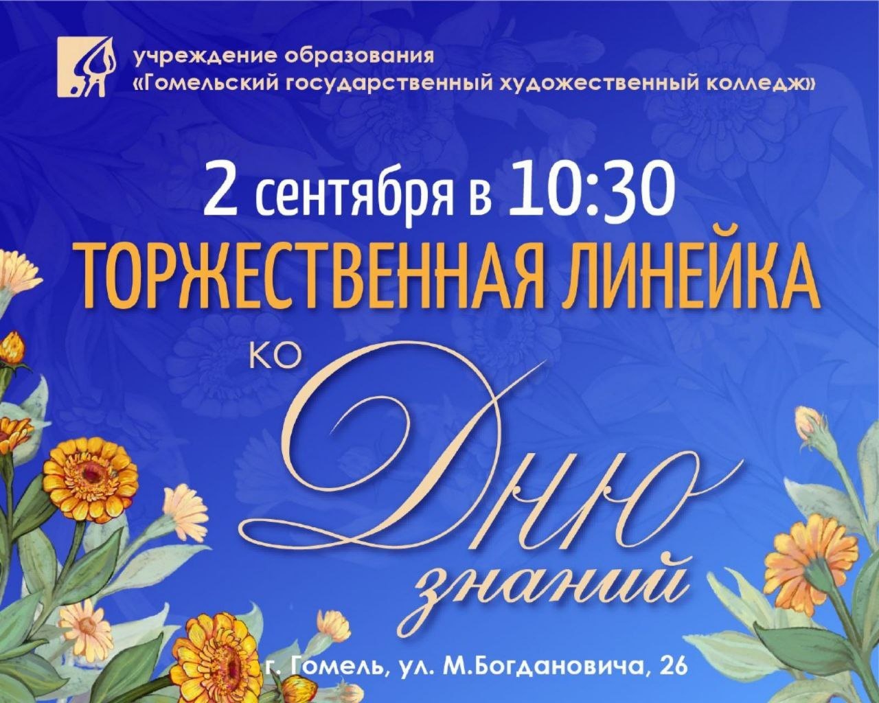 2 сентября в 10:30 состоится торжественная линейка, посвященная началу нового учебного года #ГГХК - Гомельский государственный художественный колледж