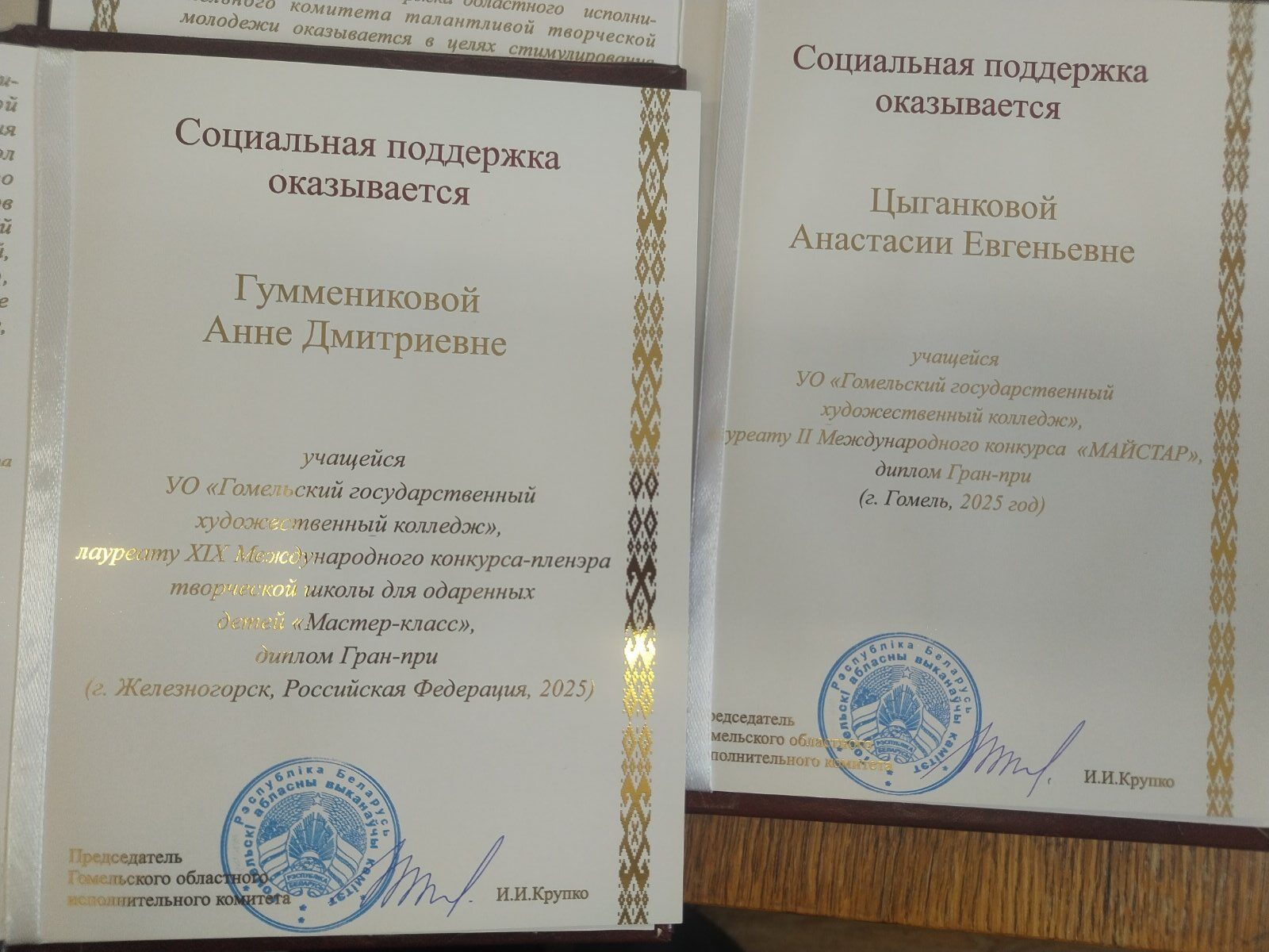Поздравляем Анну Гуменникову и Анастасию Цыганкову с важной наградой! - Гомельский государственный художественный колледж